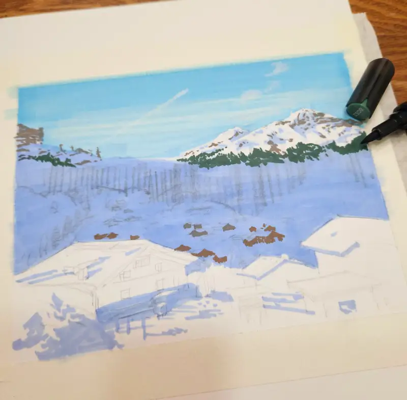 270g으로 마카작업을 여러번 레이어링해도 아래종이에 묻어나지 않아요.