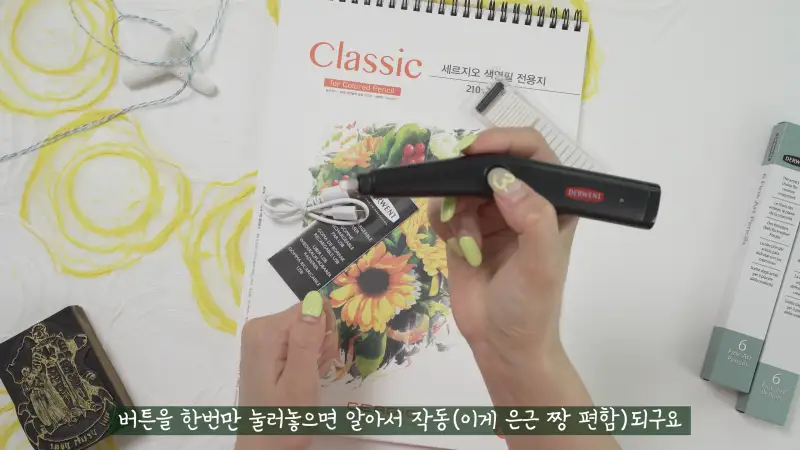 그리고 전동 지우개는 색연필화를 그려보신다면 하나쯤은 꼭 구비해 놓는게 도움이 되는 재료인데요~