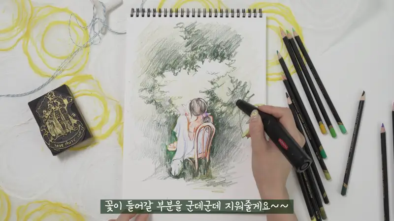 전동 지우개를 사용해서 부분적으로 색상을 지워내고, 꽃의 느낌을 만들어 볼게요!