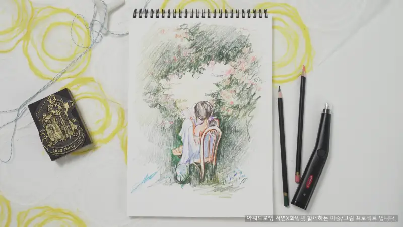 색연필은 물감에 비해 발색이 보이는 그대로 표현되는 편이라,