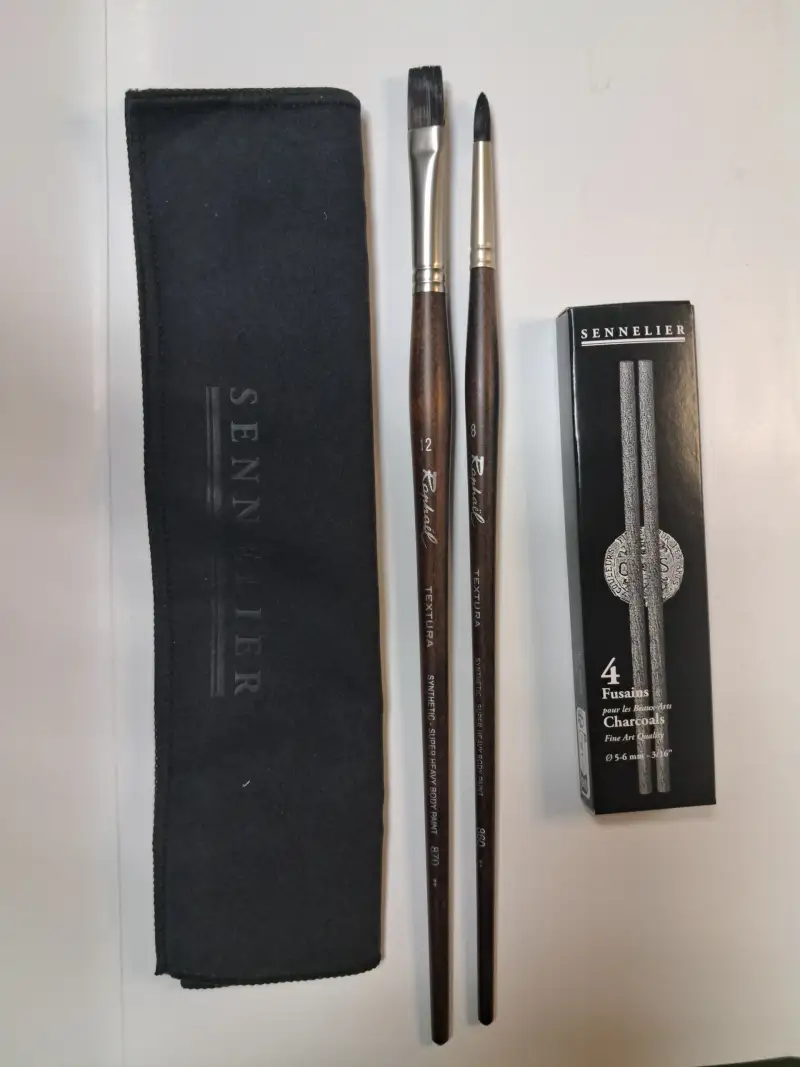 • 붓: 라파엘 860(8호·둥근) — 밑칠/블로킹, 라파엘 870— 플랫 1″ — 배경/그라데이션, 작은 라운드 바바라— 디테일