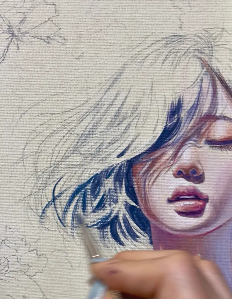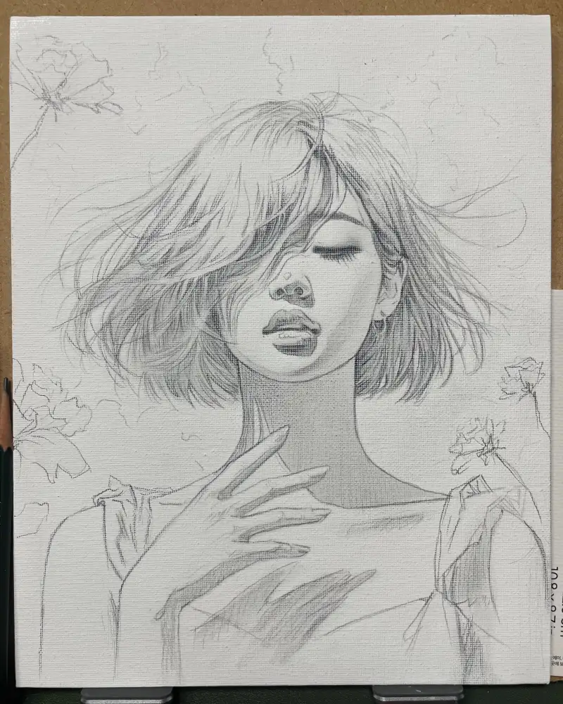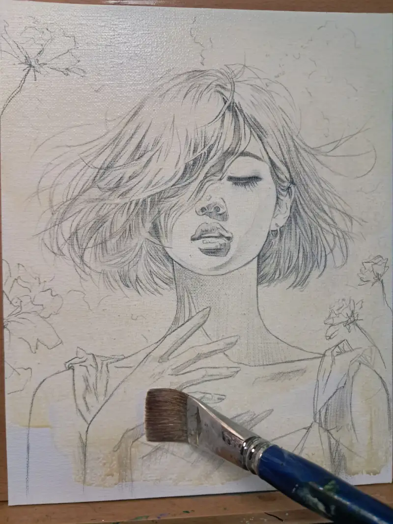 • 연필 스케치: 먼저 캔버스에 밑그림을 연필로  그립니다.