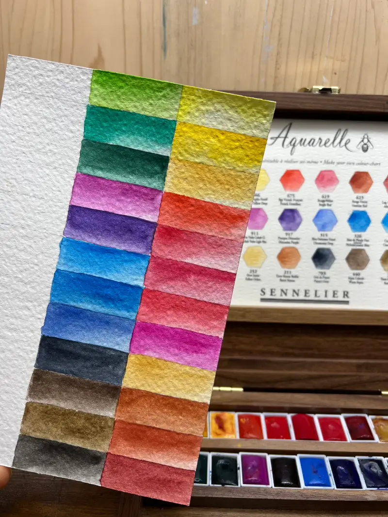 여러 브랜드의 수채화 물감의 발색표를 비교해 보면