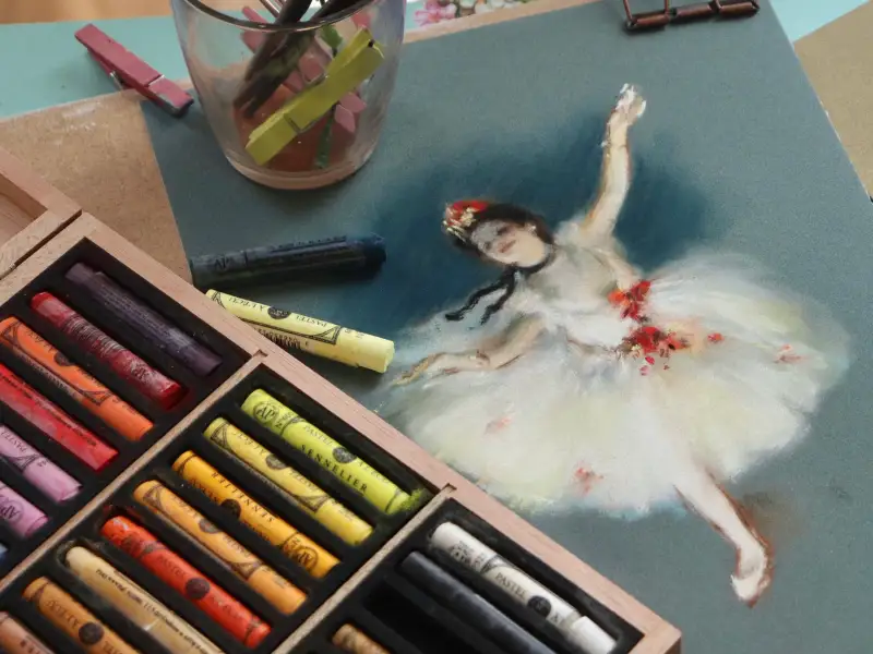 파스텔은 처음 사용해봐서 고민 끝에 파스텔화 하면 가장 먼저 떠오르는 화가 에드가 드가의 발레리나를 그렸어요.