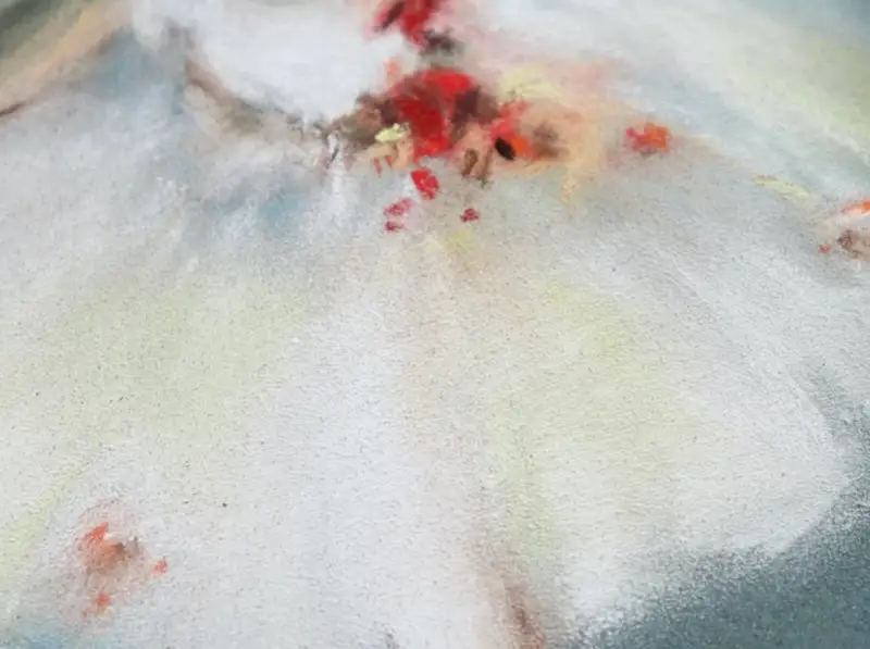 처음엔 브러쉬로 블렌딩하며 형태를 잡아주고 드레스처럼 하얀 부분은 손으로 눌러가며 더더욱 불투명하게 만들어줬어요.(손에 묻은 파스텔은 물티슈로 닦으면 바로 지워져요)