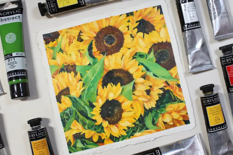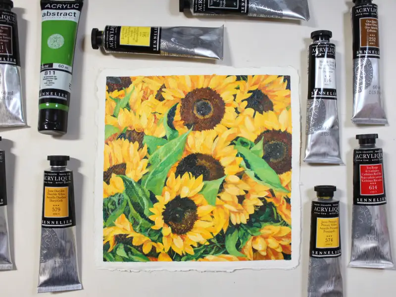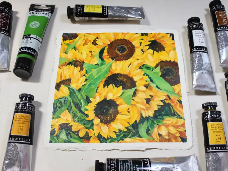 시넬리에 아크릴 물감 블랙우든 세트로 해바라기 그리기