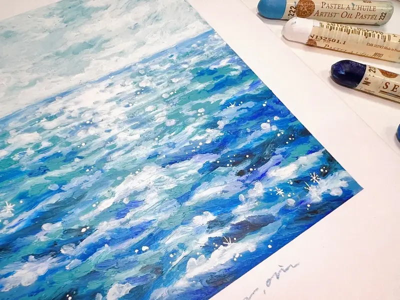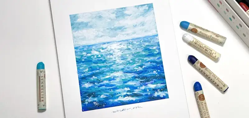 시넬리에 오일파스텔로 그린 반짝이는 바다