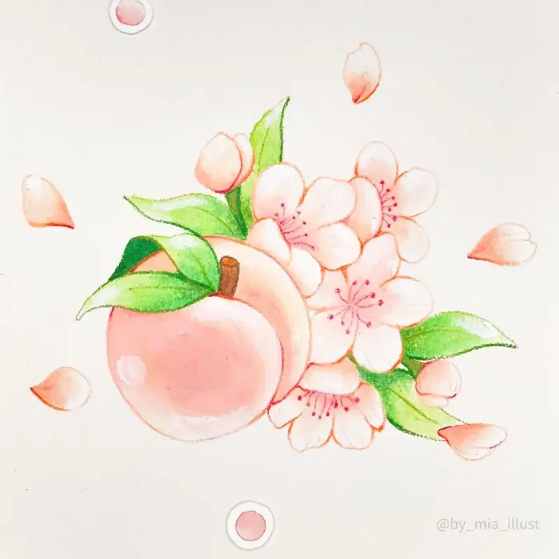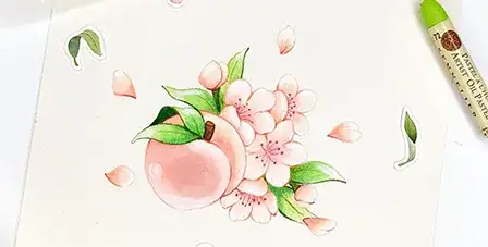 시넬리에 오일파스텔로 그린 복숭아와 꽃