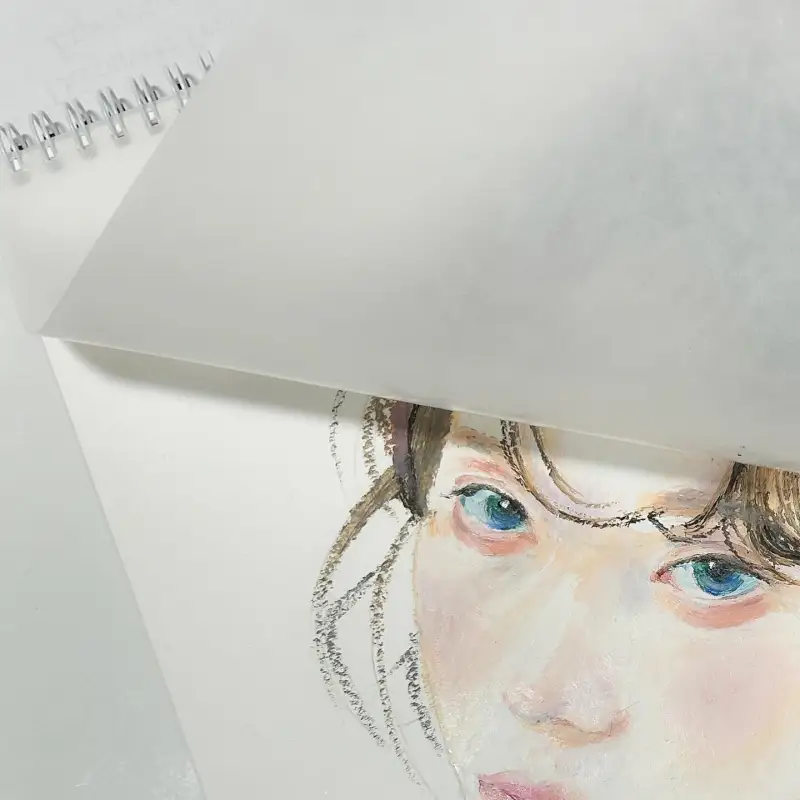 오일파스텔 전용 패드는 처음 사용해 봤는데요. 340g의 두꺼운 중성지로 오일파스텔 뿐만 아니라 유성색연필도 사용할 수 있는 스케치북이라고 해요. 오일파스텔은 특유 질감 때문에 여기저기 묻거나 뭉개질 수 있잖아요? 하지만 이 패드는 종이 사이사이 반투명한 기름종이가 들어있어 그림을 보호해 주는 데 아주 유용합니다! 픽사티브 뿌려 주고, 기름종이까지 덮어지면 완성 상태 그대로 그림을 보존할 수 있는 게 큰 장점이에요.