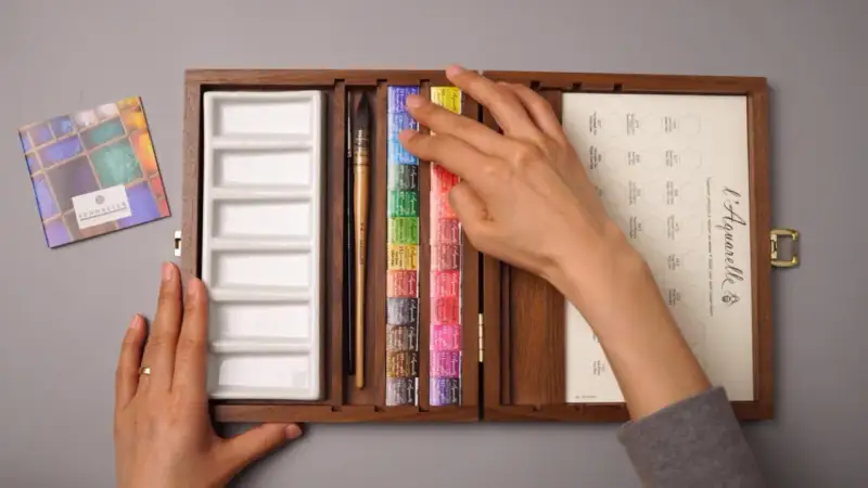 시넬리에우든박스전문가용수채고체물감세트,시넬리에수채화발색,다람쥐붓,콜린스키