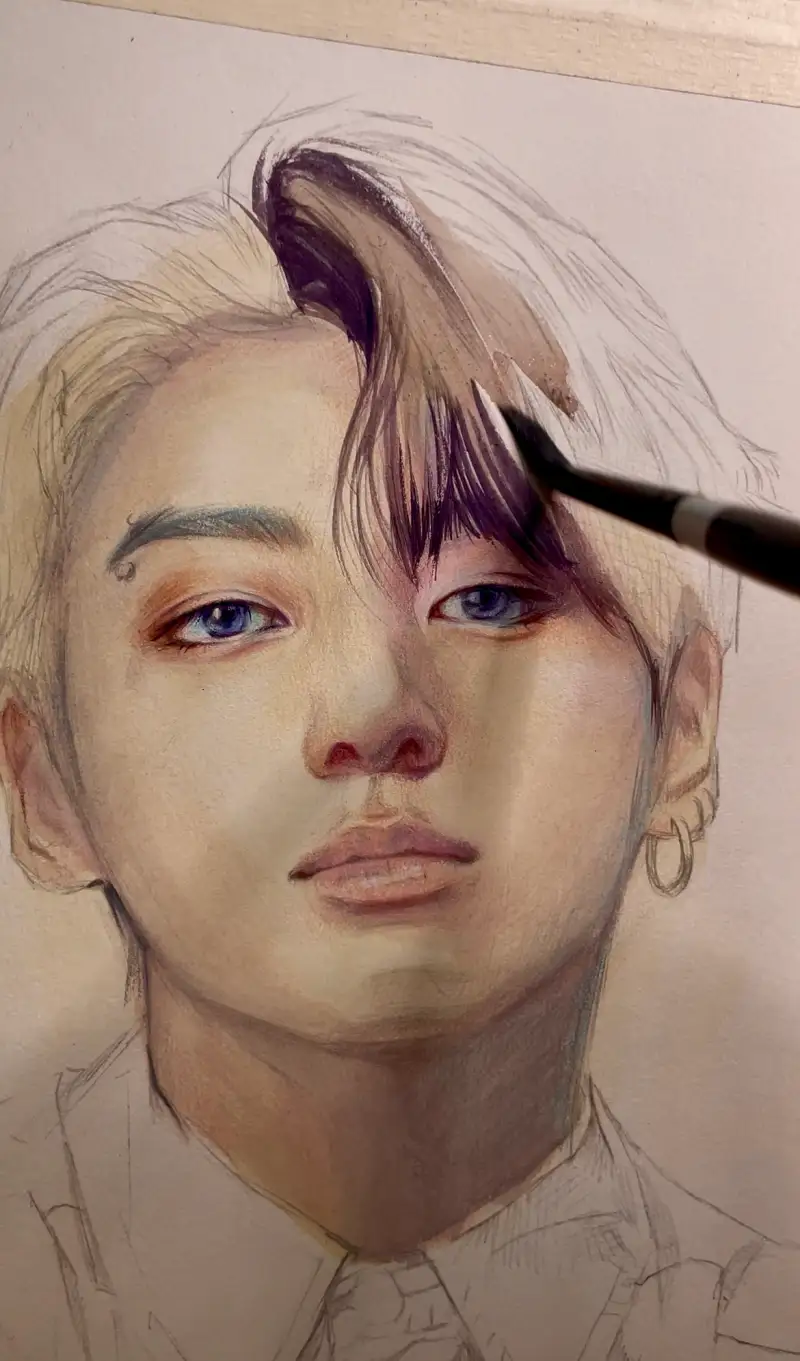 먼저,다빈치 붓으로 피부 톤의 넓은 밑색을 부드럽게 깔아주었어요. 이 단계는 큰 면적을 빠르게 채울 수 있는 붓이 제격이죠.