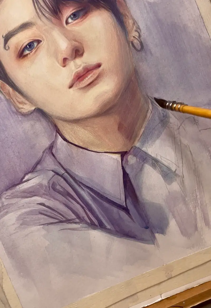 · 그림 과정에서의 역할: 이 붓의 가장 큰 매력은 인조모와 천연모의 장점을 모두 가졌다는 것이에요. 풍부한 물 머금과 맑은 발색으로, 머리카락의 섬세한 선을 그릴 때나 피부의 부드러운 그러데이션(그레이징) 을 표현할 때 정말 유용했어요. 붓털이 색을 깔끔하게 쌓아주고 흐름을 자연스럽게 만들어줘서, 디테일 작업의 핵심 도구가 되었습니다.