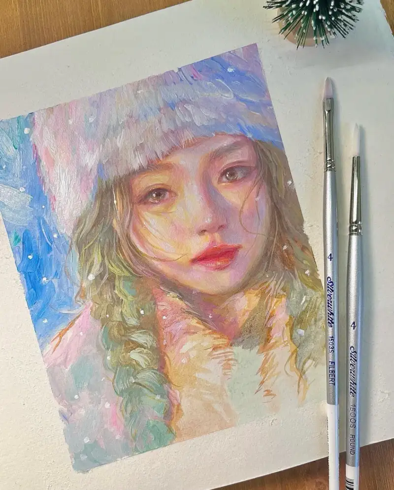 실버브러쉬와 카디페이퍼로 인물화를 그려보았어요😊