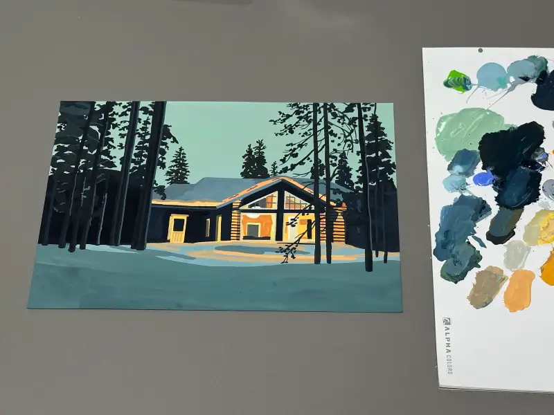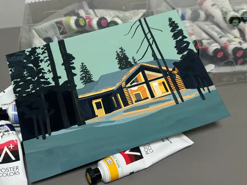 세로로 긴 나무나 직선 라인도 표면이 매끄러운 종이 덕분에 깔끔하게 표현됐고, 색도 균일하게 올라왔어요.