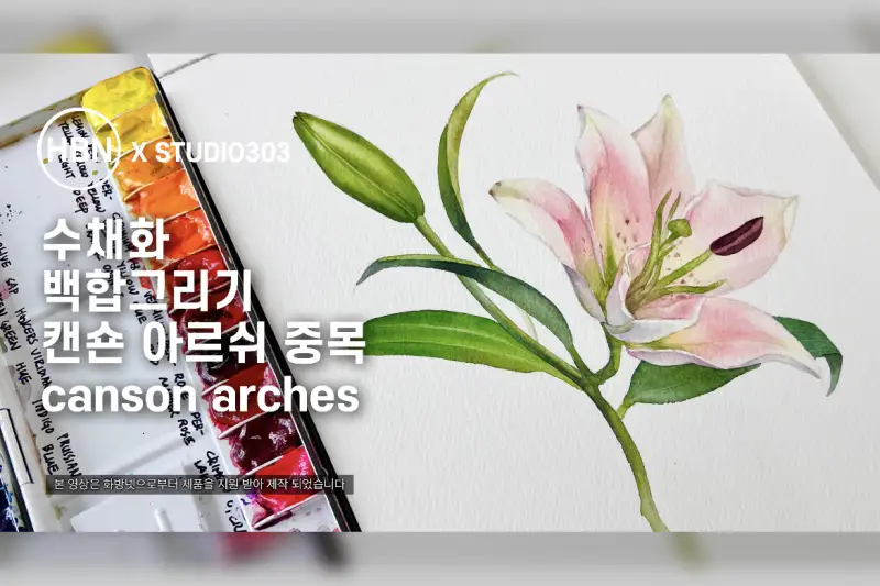 아르쉬 중목 위에 수채화로 백합 그리기