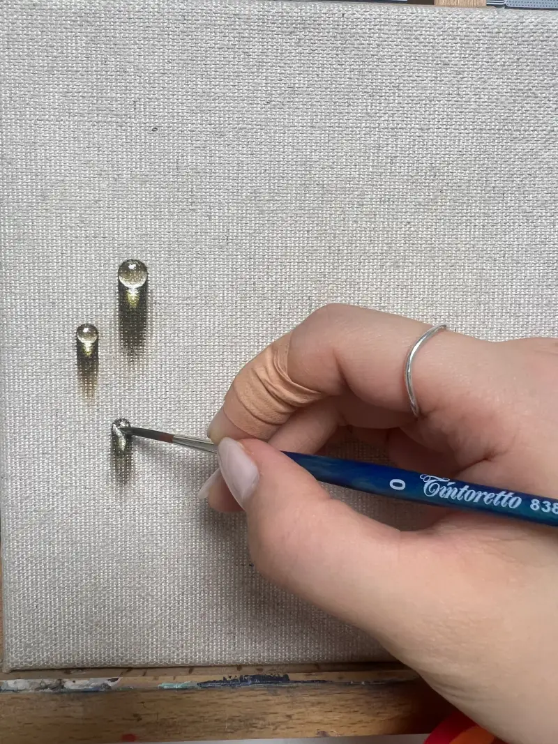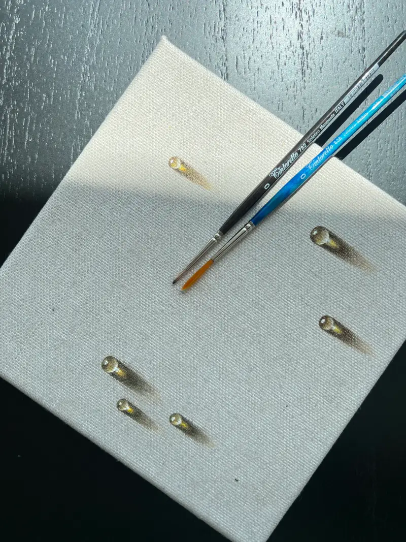 우선 몽구스 782 브러쉬는 천연 몽구스 모의 질감을 재현한 합성모로 제작된 세필붓이에요. 합성모라 관리가 쉽고 내구성이 좋은 점도 장점입니다. 특히 탄력성과 복원력이 좋아서 유화, 아크릴, 수채화 등 다양한 매체에 활용할 수 있어요. 저는 0호를 사용했는데, 작은 사이즈임에도 붓끝이 아주 잘 모여서 하이라이트나 반짝임 같은 디테일 표현에 유용했어요. 눈동자나 물방울 안의 빛 표현처럼 세밀한 포인트 작업에 정말 적합했습니다.