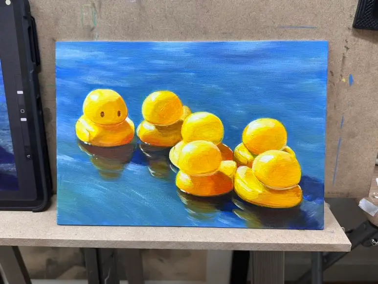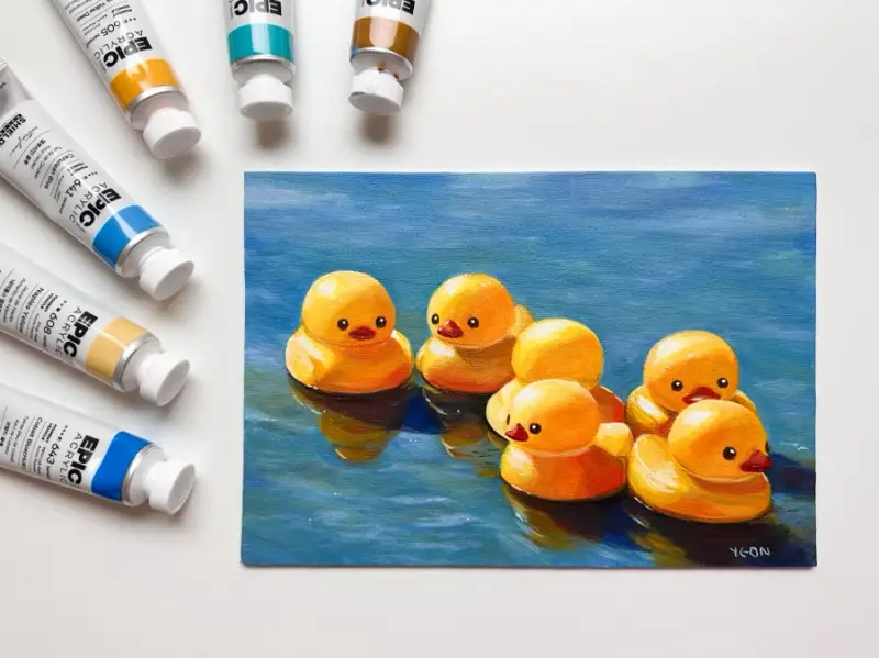 미숙한 아크릴화 실력으로 오리 여섯둥이를 그려봤습니다.