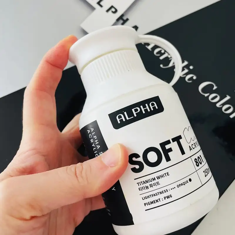 화이트 물감은 흐르는 제형의 알파 소프트 바디 아크릴물감을 사용해요.