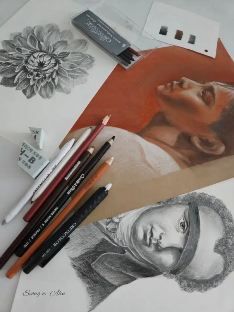 자주 쓰던 연필 그림이 지겹거나 새로운 재료에 도전해 보고 싶은 분들은 가성비 좋고 클래식한 색이 매력인 콘테 그림 한번 그려보세요!