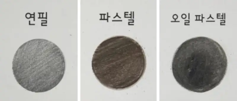 연필과 연필파스텔, 오일파스텔은 다른 것에 비해 색은 연하지만