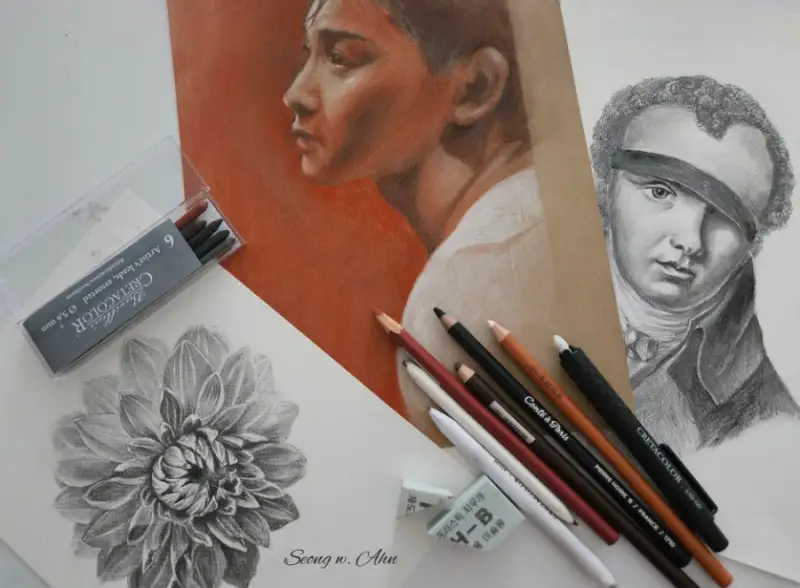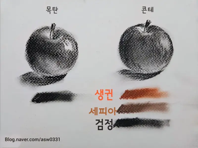연필보다는 낯선 재료인 콘테로 그림을 그리며 필요한 보조재료들을 같이 알아보겠습니다.