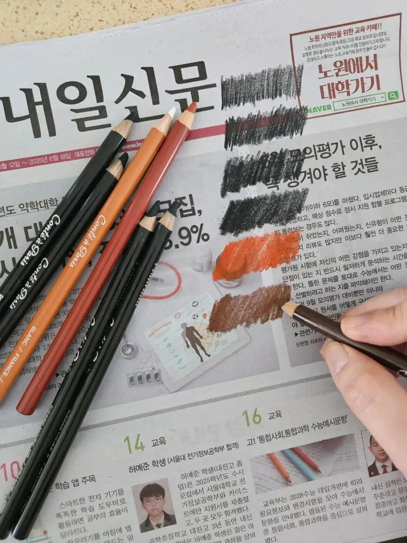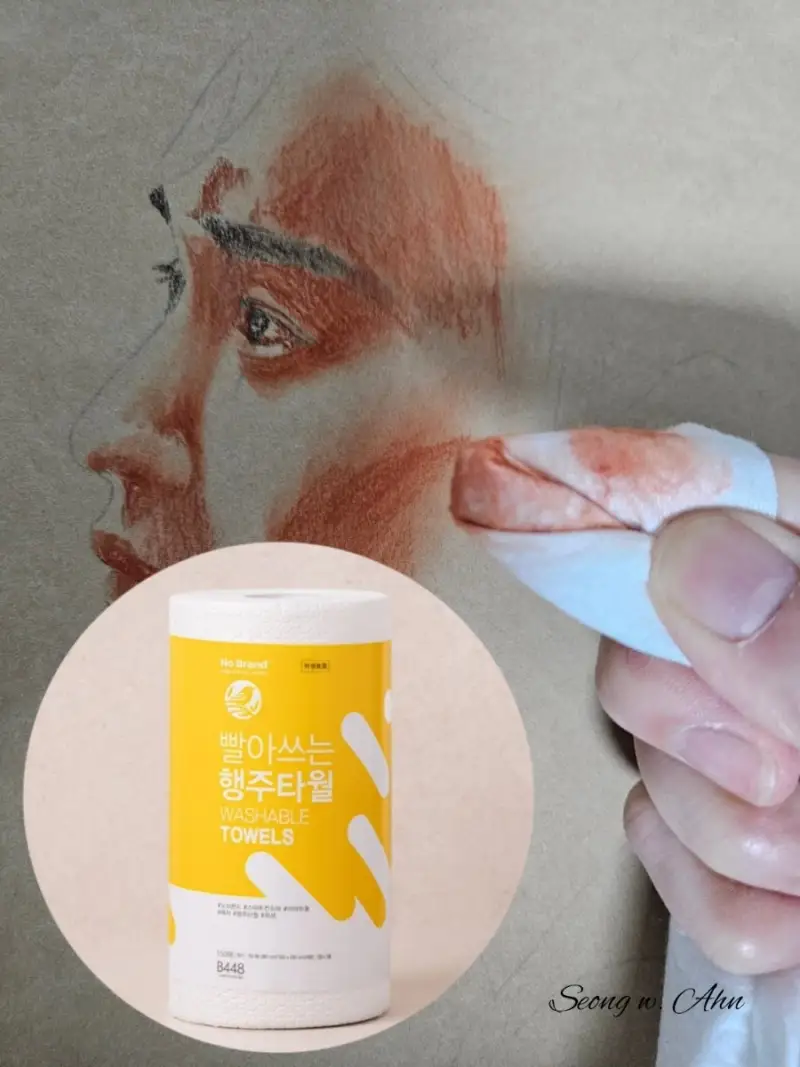 콘테나 목탄 같은 재료는 컨트롤이 쉽지 않으니 처음 써보시는 분들은 선연습이 필요한데, 이때는 신문지를 이용하면 좋아요.