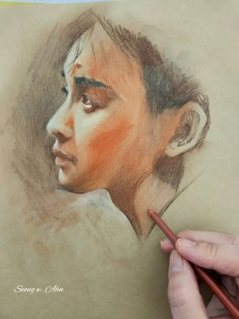 콘테는 목탄 같은 검정색 말고도 몇 가지 색이 더 있는데,