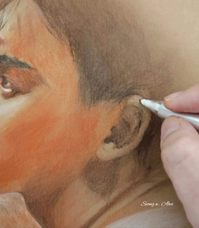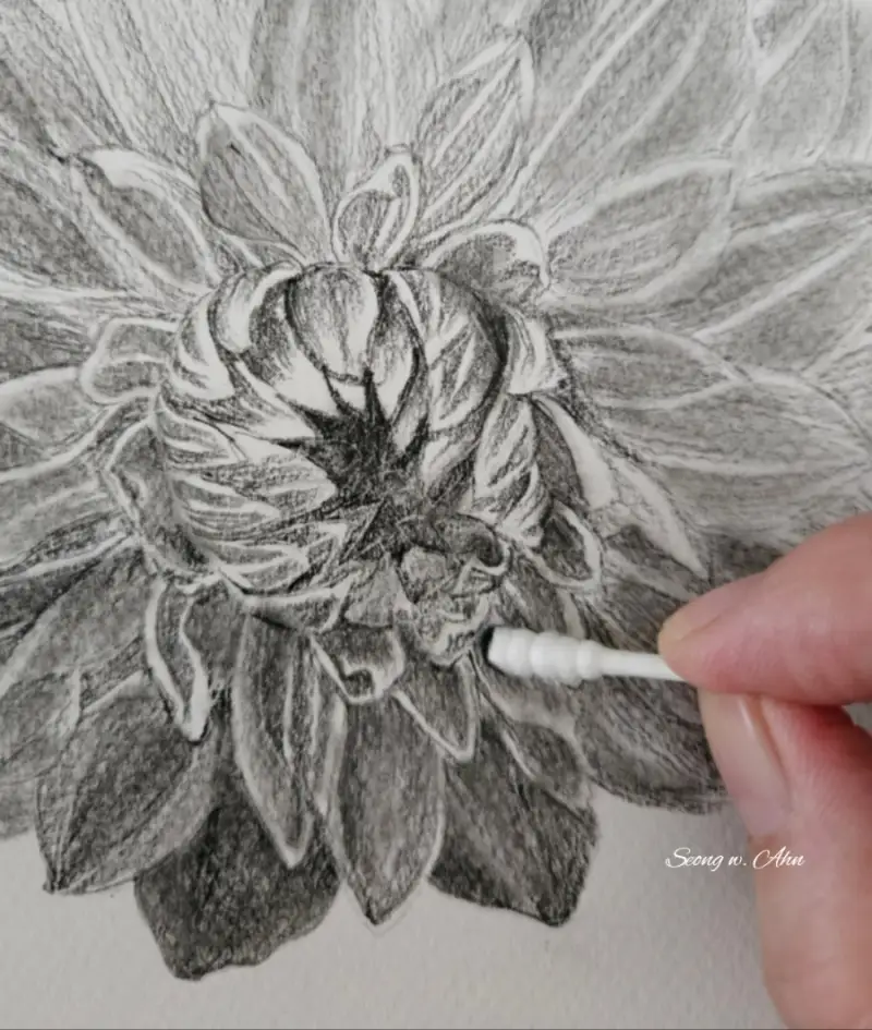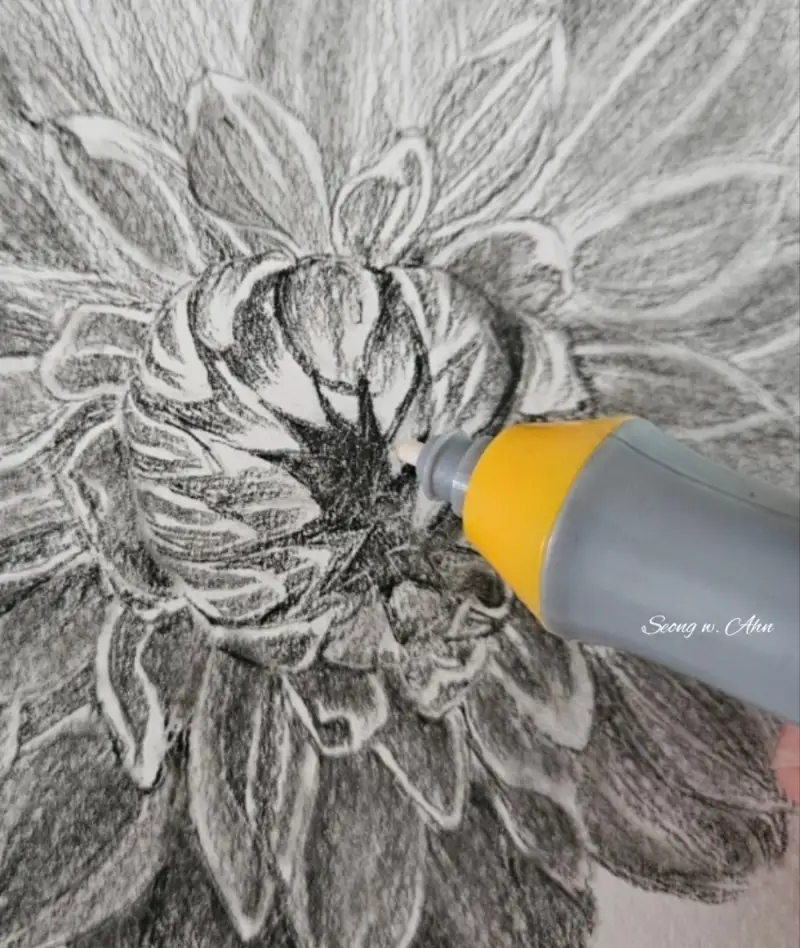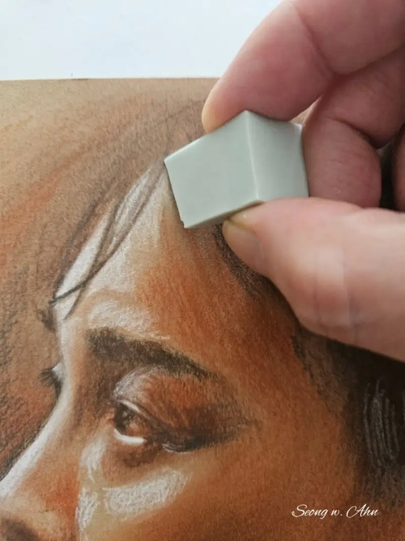 좁고 아주 밝은 하이라이트 부분은 전동지우개로 지워줬어요.