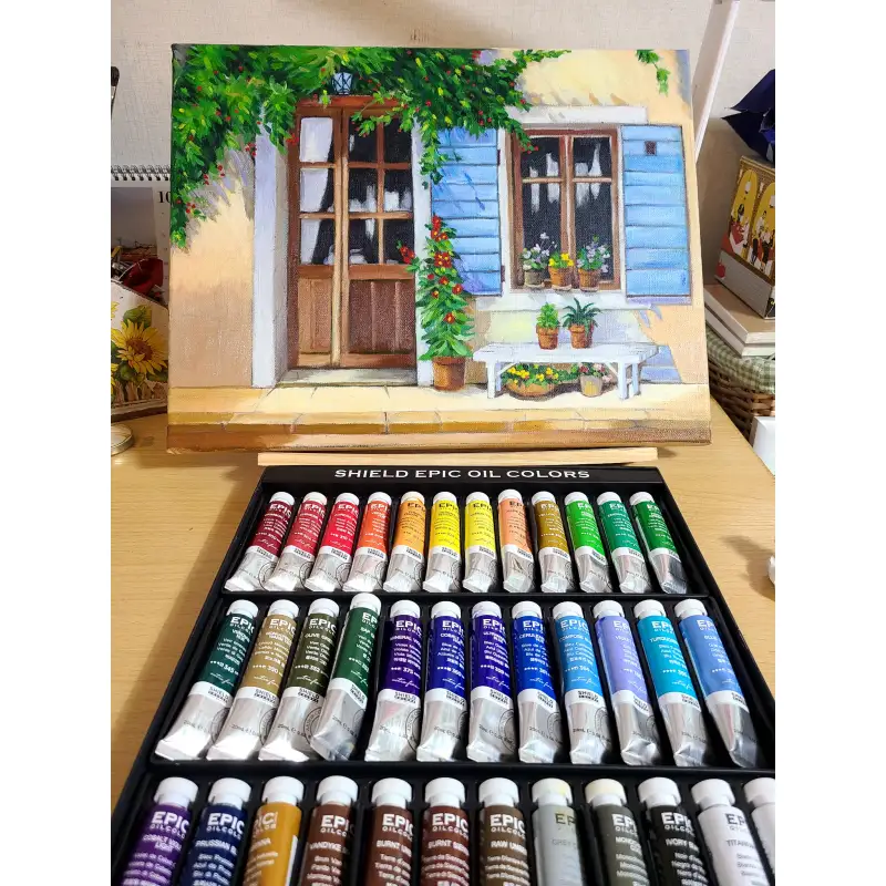 저는 문과 창문이 있는 풍경을 그려봤는데 쉴드 에픽 유화물감의 매력에 흠뻑 빠져보는 시간이 였습니다.