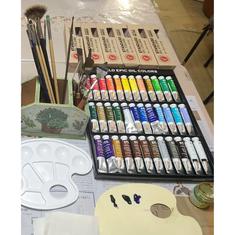 쉴드 에픽 유화물감(20ml 36색)과 스탠다드 대용량 (180m)유화물감과 각종 오일를 협찬 받았습니다.