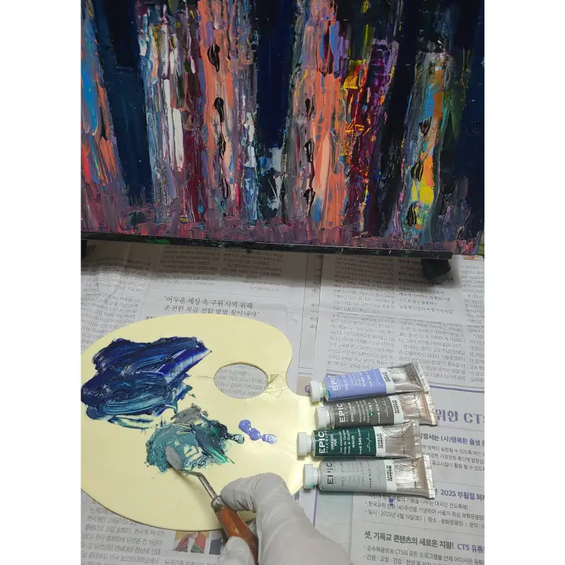 이번에 에픽 유화물감을 사용하는데 깜짝 놀랐습니다. 예전에는 물감의 농도가 묽었는데 이번에 협찬받아 사용하는데 농도가 되직하여 접착력과 은폐력이 너무 좋았습니다. 해외의 유명 물감과 견주어도 손색없었습니다.