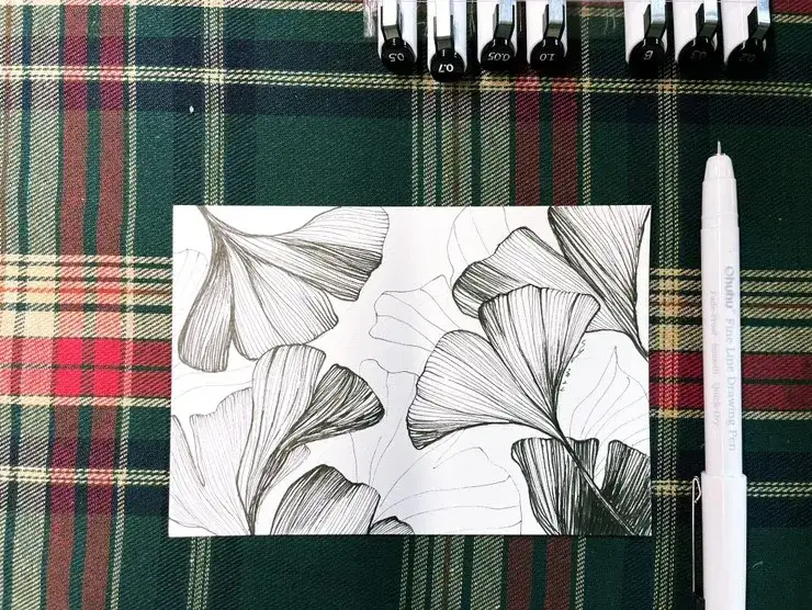 오후후 파인라이너로 그린 가을나뭇잎 펜드로잉