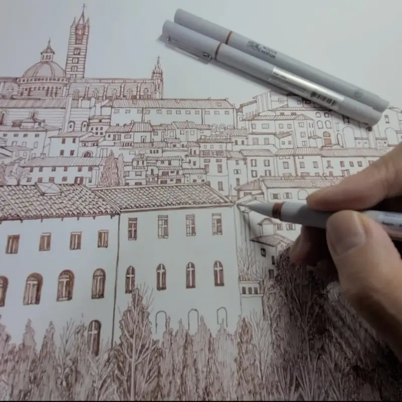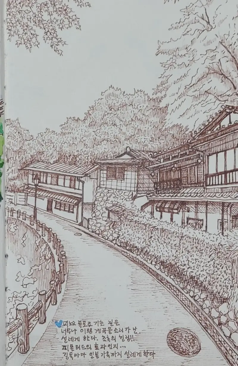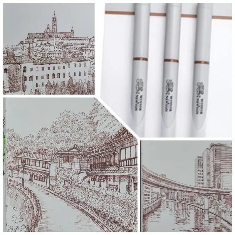 저는 어반스케치할 때, 여행드로잉 할 때 라인만 넣고 수채물감으로 채색할 때 선이 튀지않아. 좋았습니다. 또한 펜드로잉 해칭을 넣어 깊이감을 넣을 때도 탁월했습니다.