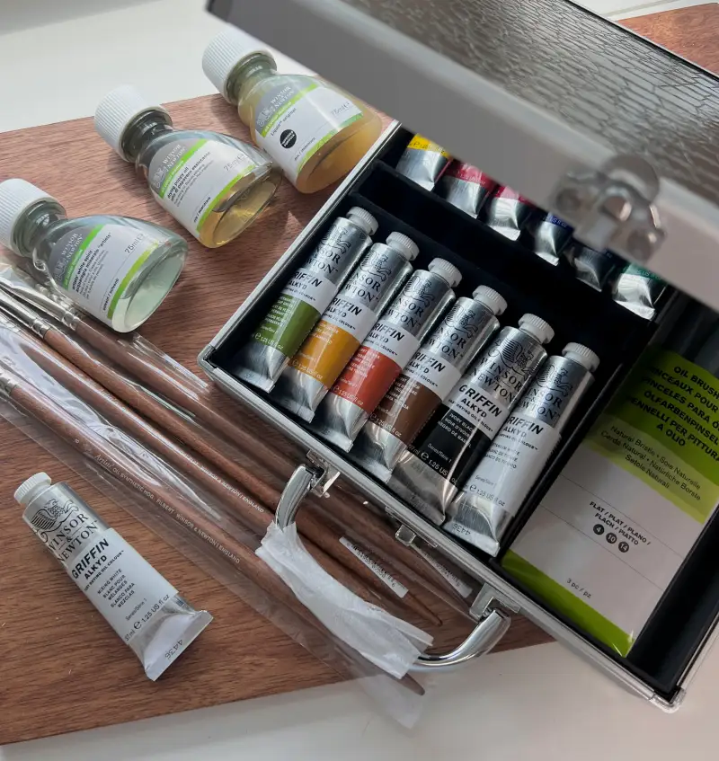 그리핀 알키드 유화물감은 속건성 유화물감으로 일반 유화물감보다 건조 시간이 빨라 하루면 다음 작업이 가능해 매일 작업할 수 있었어요.