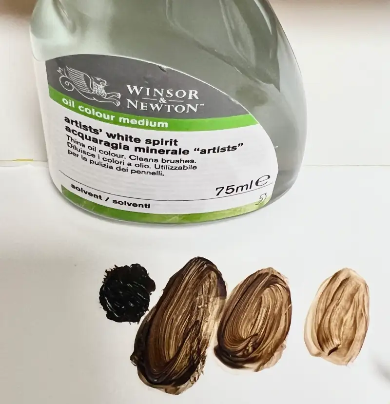 물감에 윈저앤뉴튼 화이트 스피릿을 조금씩 섞어보며