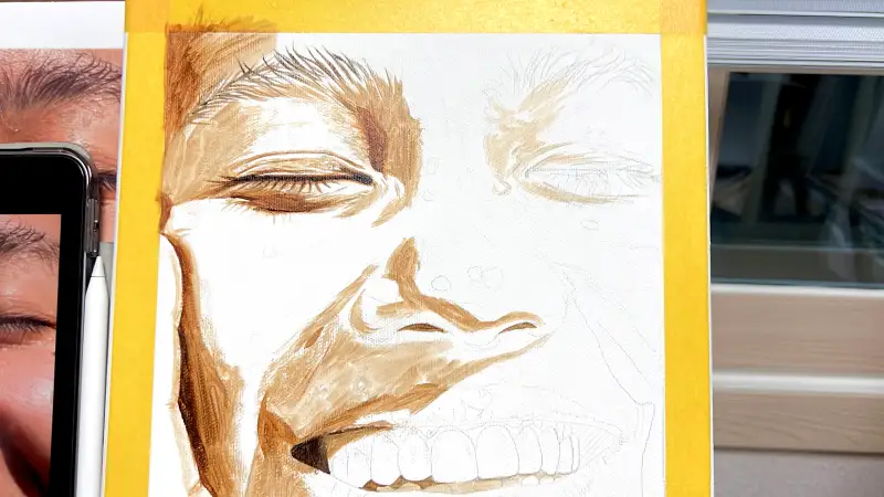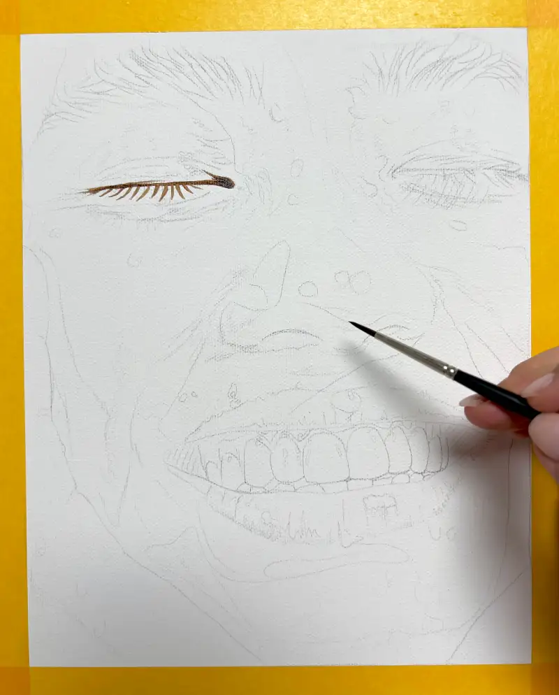 ‘번트 시엔나’ 색으로 스케치, 초벌 작업
