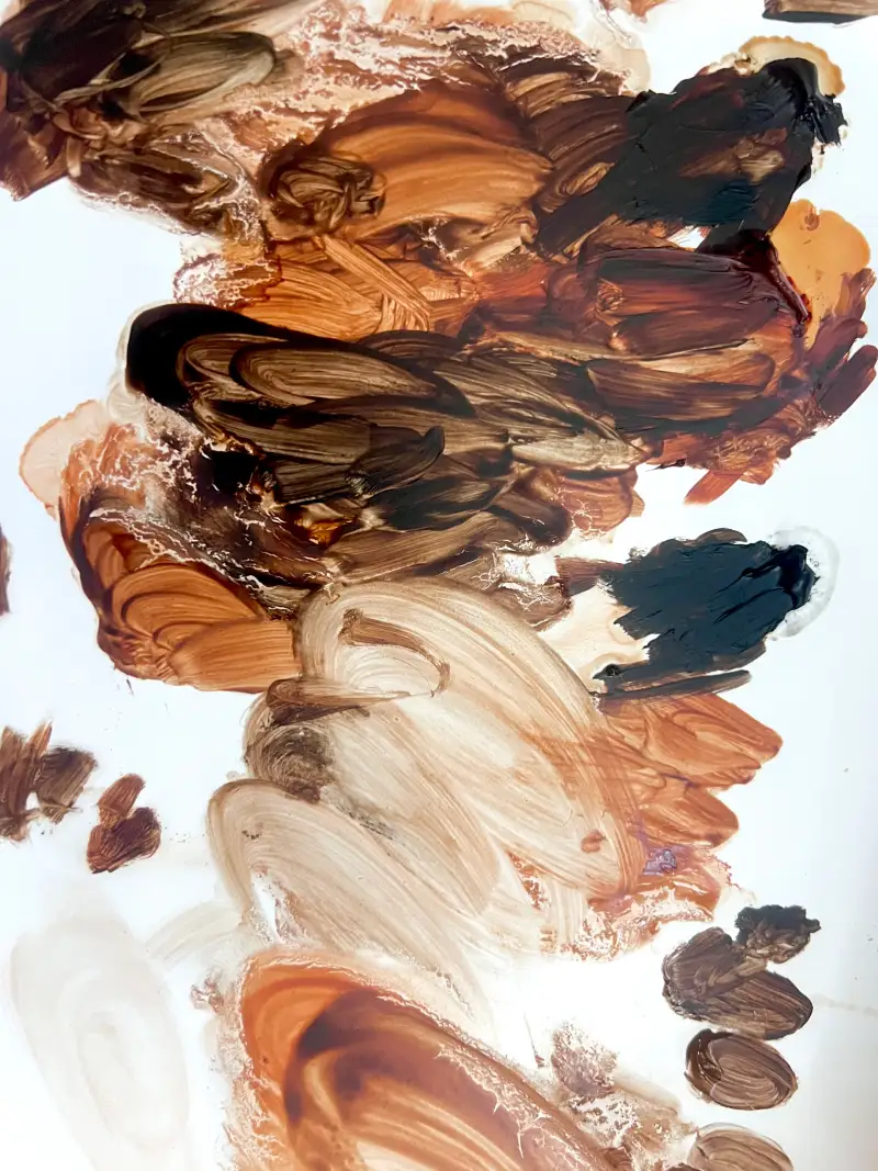 알키드 물감은 빨리 건조되는 편이라 중반 작업부터는 드라잉 뽀삐 오일을 많이 사용해 속도 조절과 유동성을 증가시켜 작업했어요