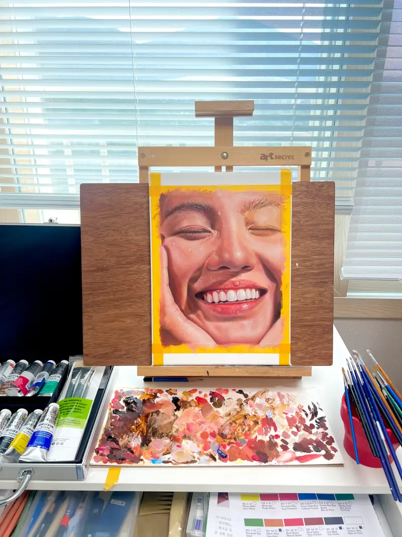 12색과 믹싱 화이트 + 티타늄 화이트의 색 구성은 인물화를 그리기에 부족함이 없었습니다.