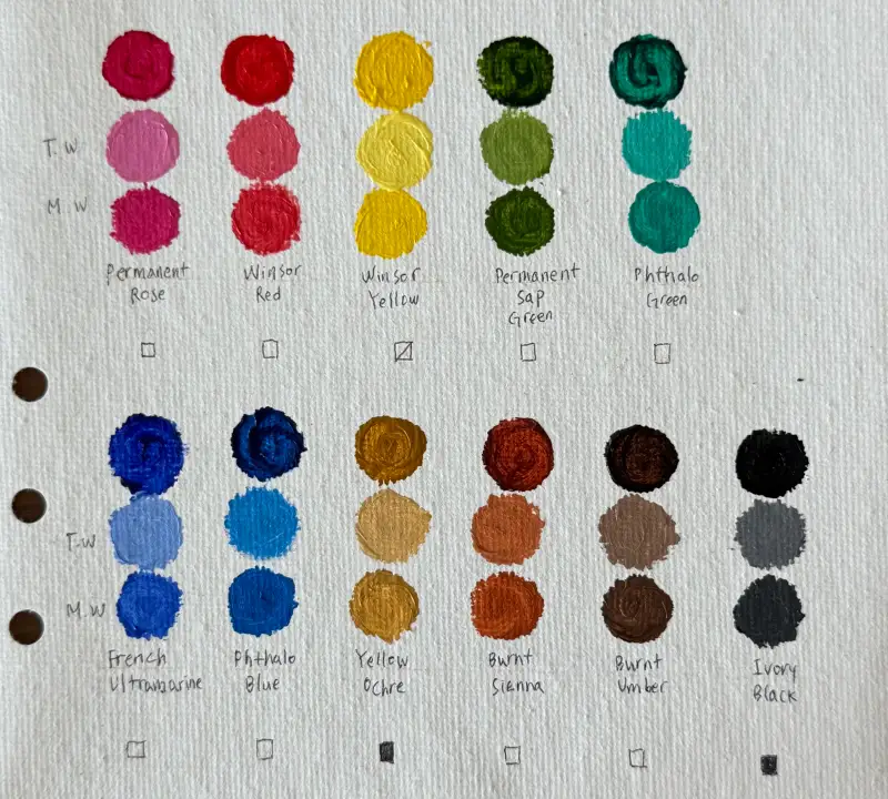 보통 유화물감 발색표를 만들면 일주일 정도 말려두는데
