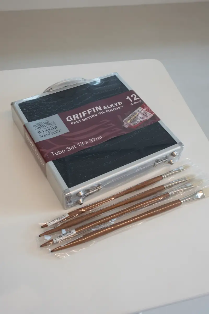 평소 윈저앤뉴튼의 유화물감을 자주 사용해왔고 알키드수지 기반의 보조제를 자주 사용하다보니 그 두가지가 합해진 그리핀 물감이 출시되었을 때 어떤 느낌일지 기대를 했었는데요, 이번에 윈저앤뉴튼에서 그리핀 12색 세트와 윈저앤뉴튼 돈모 브러쉬, 보조제 등을 제공해주셨습니다.