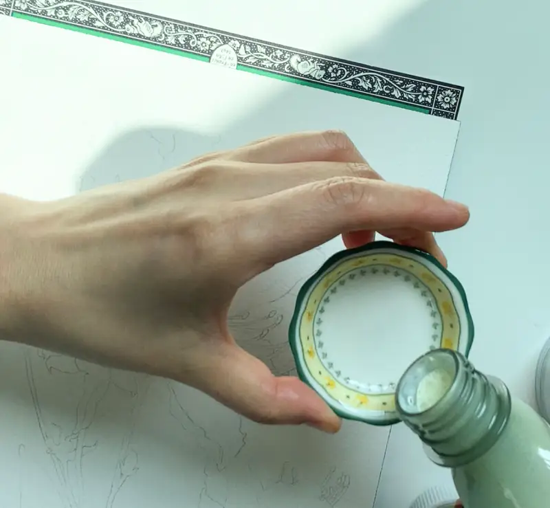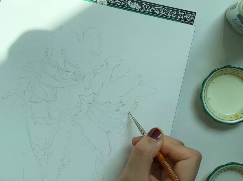윈저앤 뉴튼 마스킹액은 이렇게 조금씩 덜어 세밀한 붓으로 물감을 칠해주듯 칠해주면 됩니다.