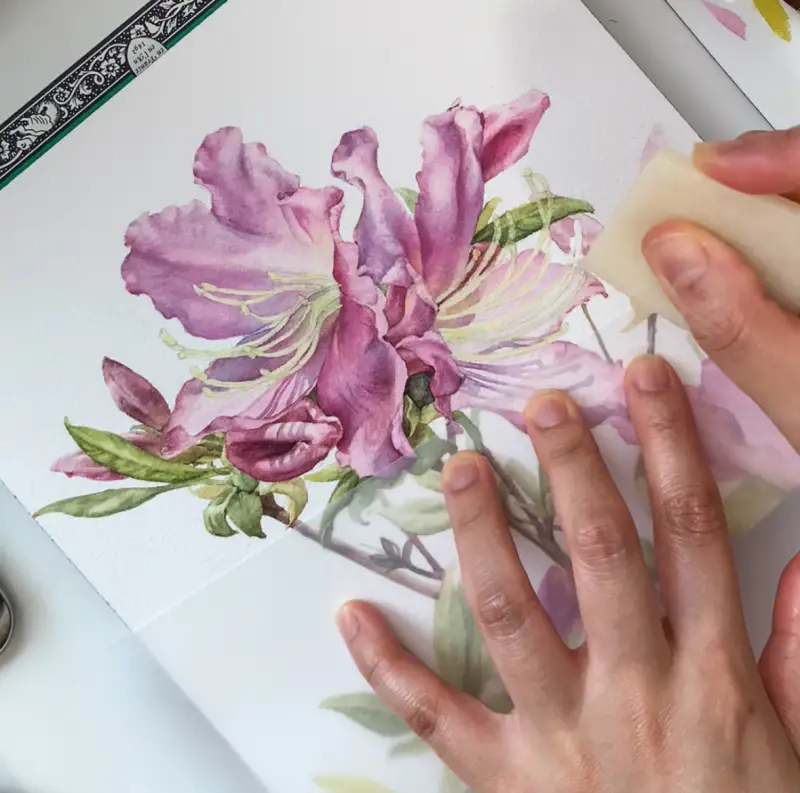 이전에는 지우개의 필요성을 모르고 손으로 떼어냈었는데요. 손으로 비비면서 떼니까 마스킹액 위에 묻어있던 물감이 종이에 번져서 그림을 망쳤던 기억도 있어서 이번에는 지우개를 구입해봤습니다.