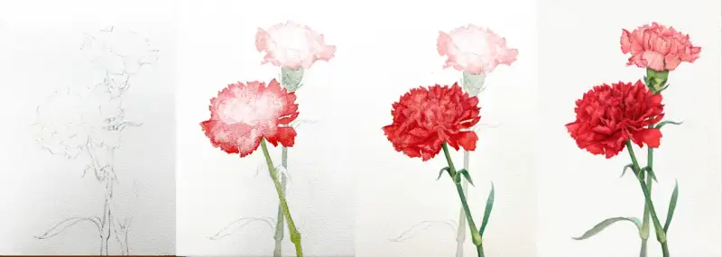 윈저앤뉴튼 수채물감과 라파엘붓으로 카네이션 그리기