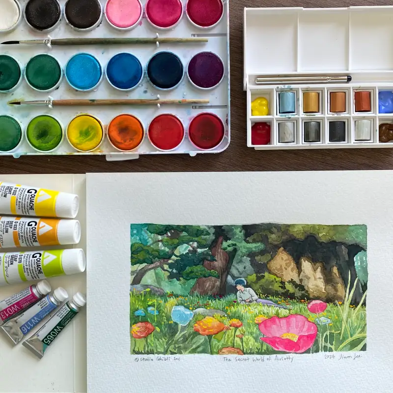 감을 다시 찾기 위해 스튜디오 지브리의 애니메이션 ‘마루 밑 아리에티(2010)’의 일러스트를 그려보았습니다.