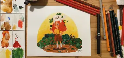 이 그림은 윈저앤뉴튼 코트만 수채물감을 베이스로 깔고 색연필과 함께 작업을 했어요.