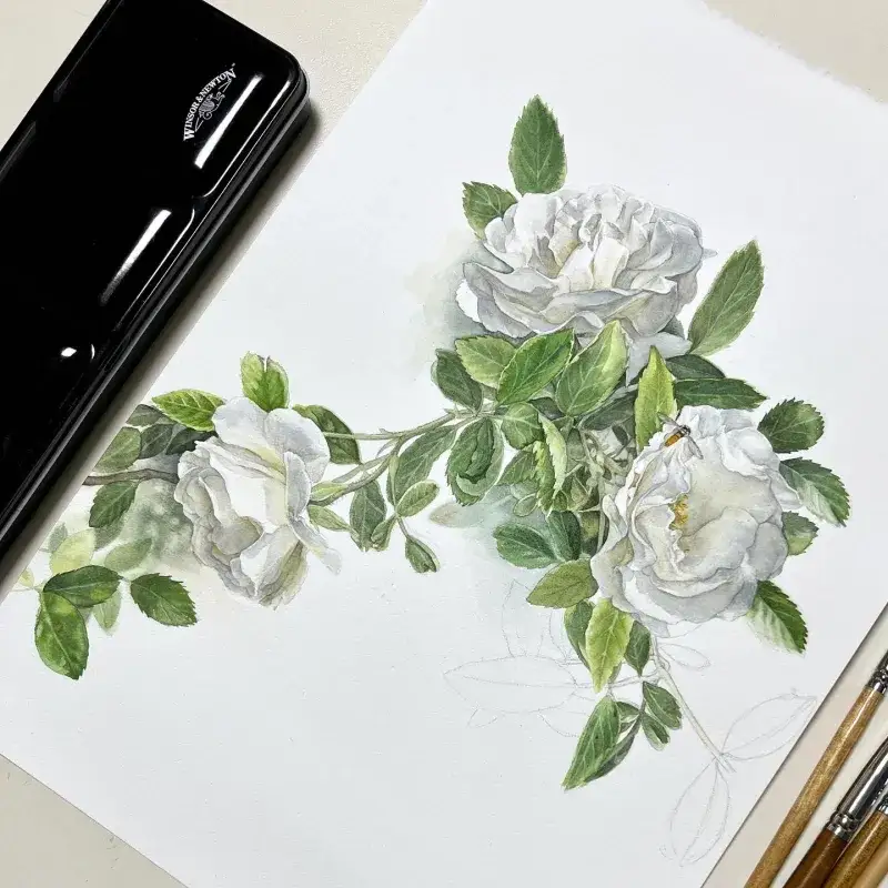 부분적으로 온도감이 색을 옅게 덧칠해주면 비교적 어렵지 않게 하얀꽃을 완성할 수 있어요.