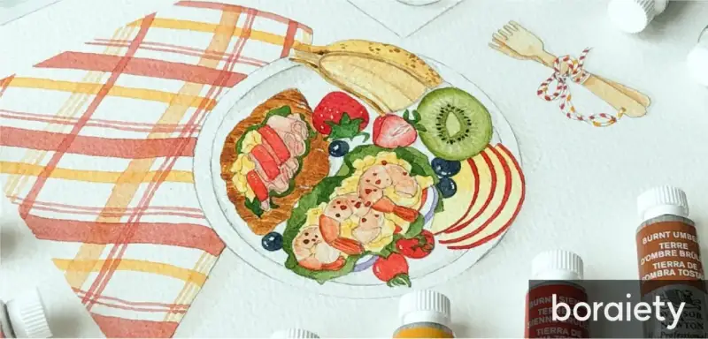 브런치 한 상 가득 스케치북에 펼치면 왠지 모르게 기분이 좋아요:) ❤️