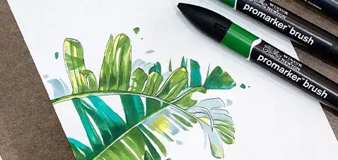 윈저 앤 뉴튼 프로 마카 브러쉬로 그린 초록 식물