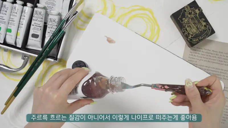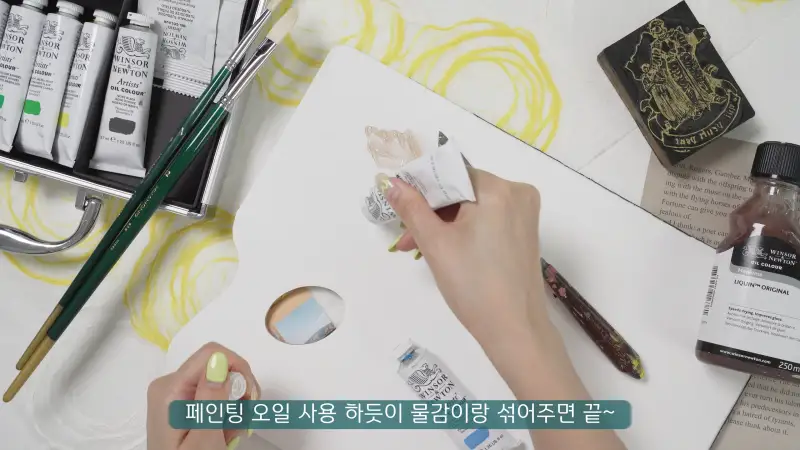 리퀸 역시 페인팅 오일과 마찬가지로 물감의 농도가 너무 묽어지지 않게 물감의 양 보다는 조금만 넣어 주세요!
