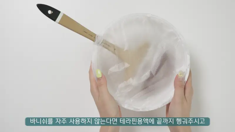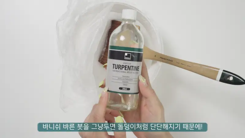 바니쉬는 마무리 코팅제이기 때문에 사용한 붓을 바로바로 세척하지 않으면 완전 돌처럼 단단해 져서 붓을 버리게 됩니다 ㅠ